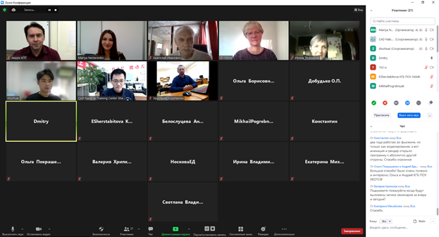 В рамках проекта «Международное образование» краевое государственное автономное образовательное учреждение дополнительного профессионального образования «Хабаровский краевой институт развития образования» с 05 по 07 апреля 2021 года в дистанционном формате провело международный практический семинар «Инженерный дизайн CAD: применение цифрового дизайна в образовании». Участниками семинара стали 34 человека: преподаватели и учителя из 6 центров цифрового образования «Точка роста» и учреждений общего и дополнительного образования, 11 профессиональных образовательных организаций из 7 населенных пунктов Хабаровского края.