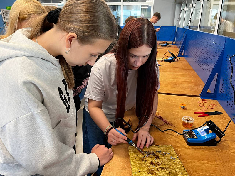 Комсомольский-на-Амуре судомеханический техникум имени Героя Советского Союза В.В. Орехова подготовил такие активности, как работа с канифолью и пайка проводов, сборка элементов электрической цепи и выполнение сварных швов в очках виртуальной реальности.