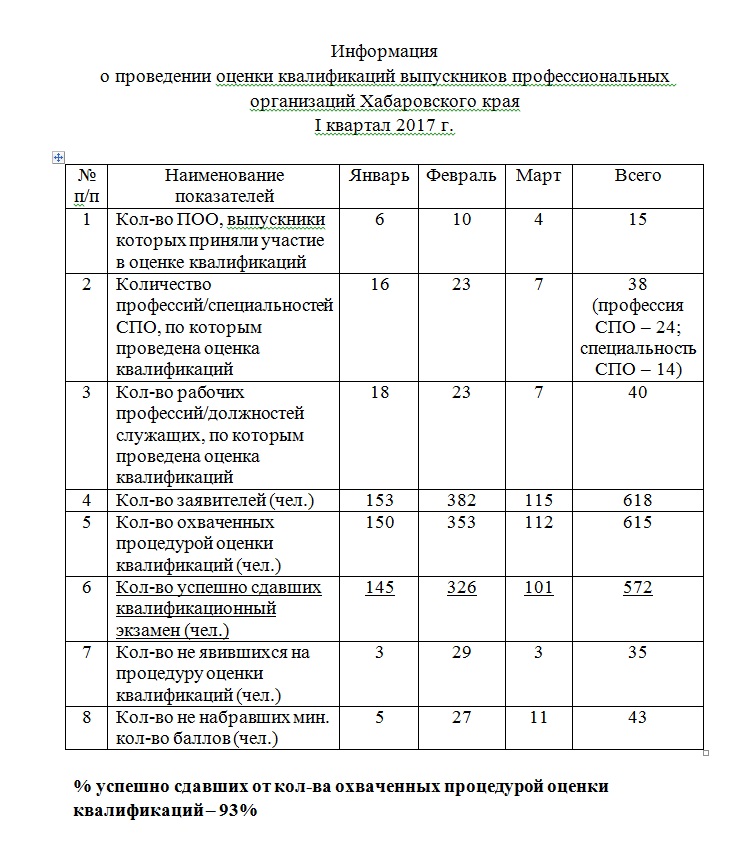 Информация о проведении оценки квалификаций выпускников профессиональных организаций Хабаровского края I квартал 2017 г.