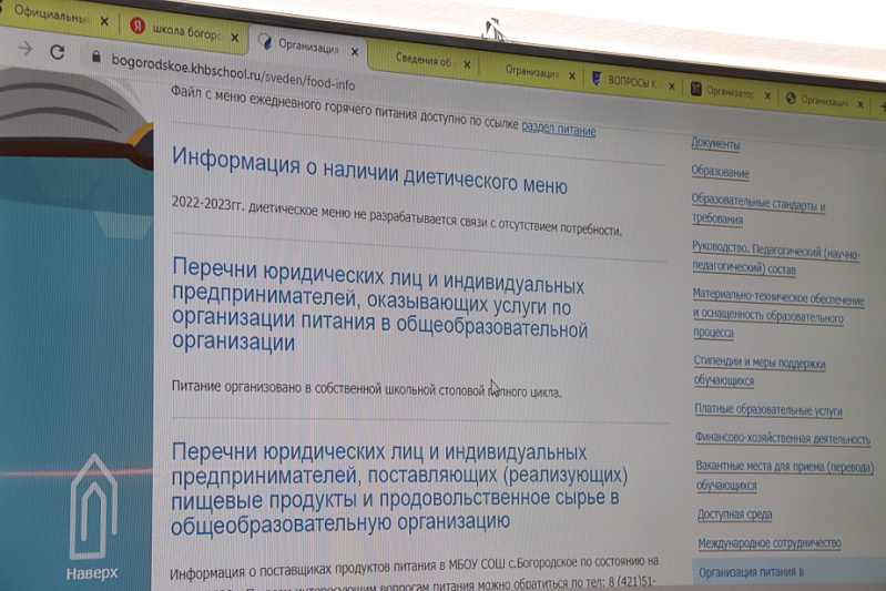 Кроме того, гости смогли понаблюдать за ходом мониторинга безопасности, проводимого с целью контроля за соблюдением общеобразовательными организациями обязательных требований к размещенной на официальных сайтах информации об условиях питания обучающихся по образовательным программам начального общего образования. Представители общественных организаций совместно со специалистами министерства просмотрели сайты ряда общеобразовательных организаций, познакомились с размещаемой школами информацией об условиях питания школьников.