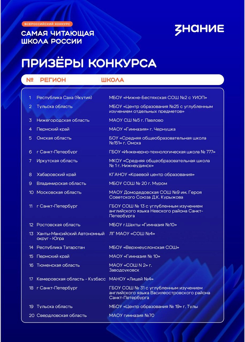 Школа и педагоги Хабаровского края вошли в число призеров всероссийских конкурсов библиотечных практик Общества «Знание»