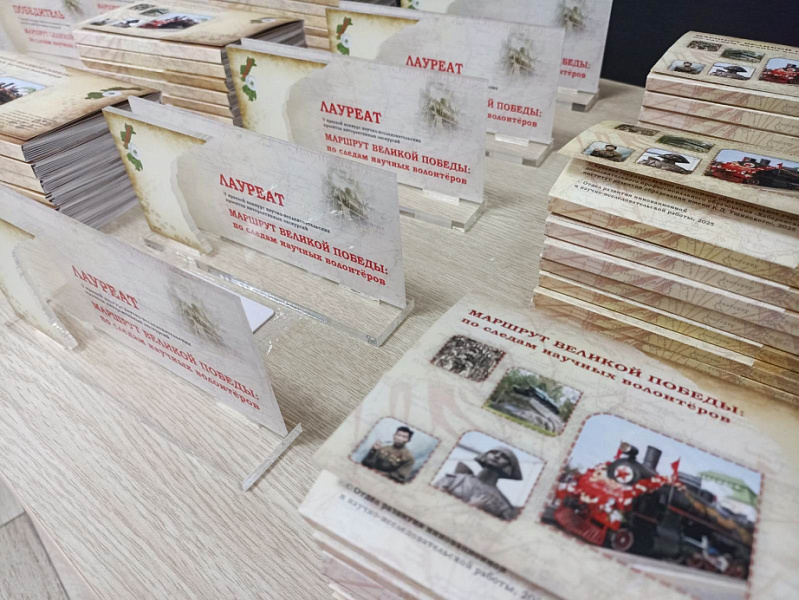 По результатам краевого конкурса было выпущено научно-популярное издание «МАРШРУТ ВЕЛИКОЙ ПОБЕДЫ: ПО СЛЕДАМ НАУЧНЫХ ВОЛОНТЕРОВ». Материал издания разбит по трем научным направлениям: