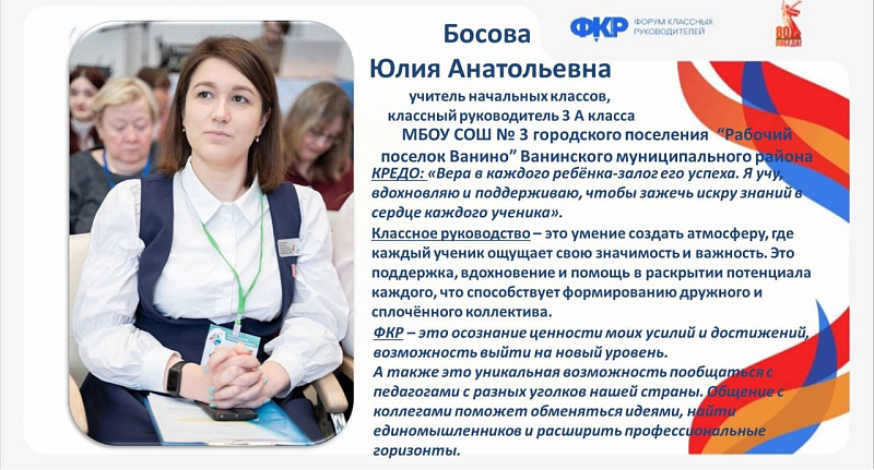- Юлия Анатольевна Босова, учитель начальных классов средней школы № 3 р.п. Ванино;