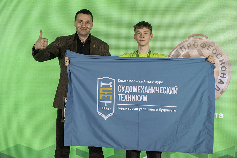 С ответным словом на церемонии награждения выступил наставник команды по компетенции "Ремонт и обслуживание легковых автомобилей" Евгений Мулер. Педагог уже более 17 лет он готовит молодых профессионалов для экономики Хабаровского края. Он представил своих подопечных, участников чемпионата, студента Артёма Веденеева и школьника Даниила Исаева.