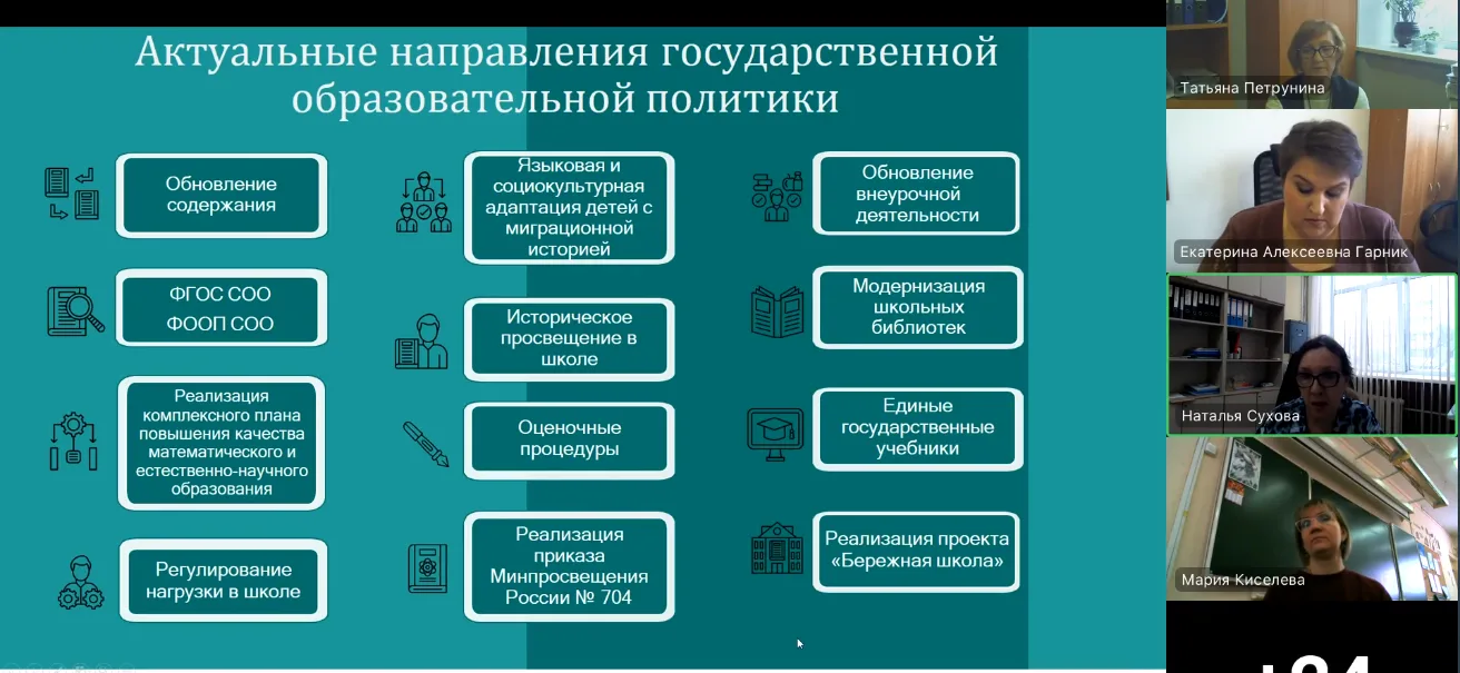 Гарник Е.А., директор центра содержания и оценки качества общего образования, представила отчет о результатах работы РУМО в 2024 году и задачи и план на 2025 год
