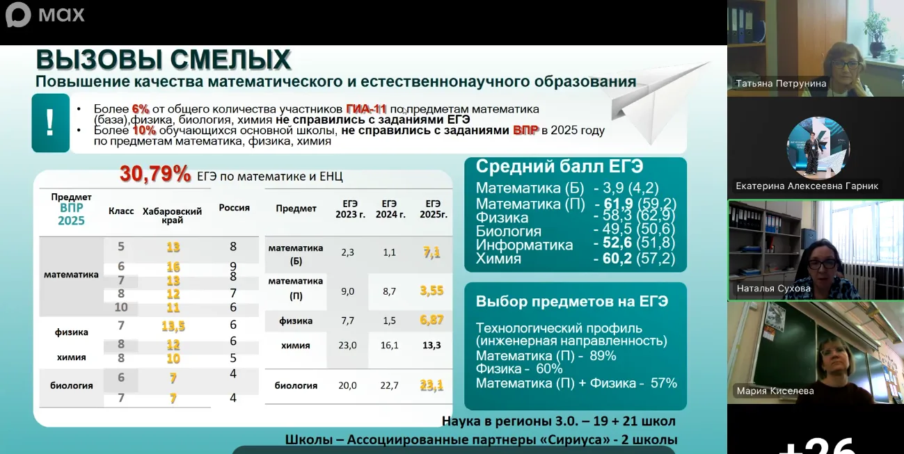 25 декабря 2025 года члены регионального учебно-методического объединения в системе общего образования Хабаровского края приняли участие в онлайн-формате во всероссийской конференции региональных учебно-методических объединений по общему образованию на тему: «Региональные учебно-методические объединения: актуальные направления деятельности».