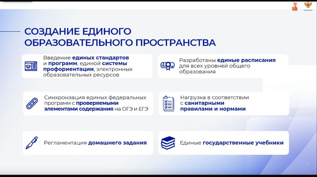 Основными вопросами стало обсуждение роли региональных учебно-методических объединений в системе формирования единого общеобразовательного пространства страны. О создании единого образовательного пространства страны, основных направлениях государственной политики в области образования, а также роли региональных учебно-методических объединений в повышении качества общего образования рассказали в своих выступлениях директор Департамента государственной общеобразовательной политики и развития дошкольного образования Министерства просвещения Российской Федерации Реут А.В. и руководитель ФГБНУ «ИСМО им. В.С. Леднева», кандидат социологических наук, доцент, заместитель председателя ФУМО Костенко М.А.