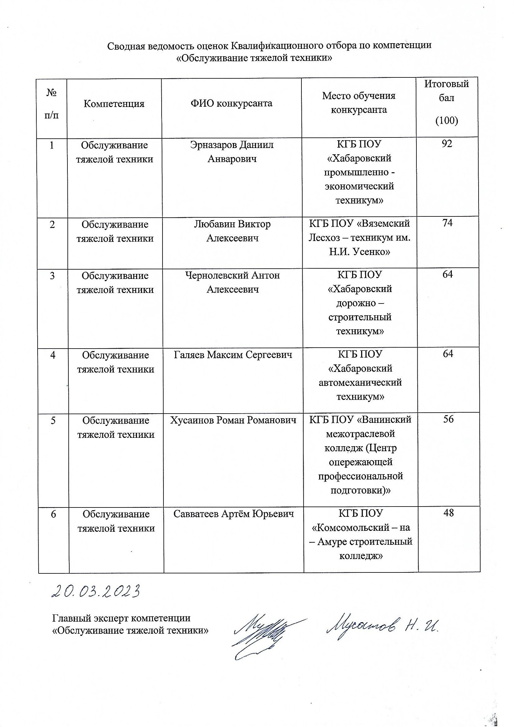 - Итоги Квалификационного отбора по компетенции Обслуживание тяжелой техники