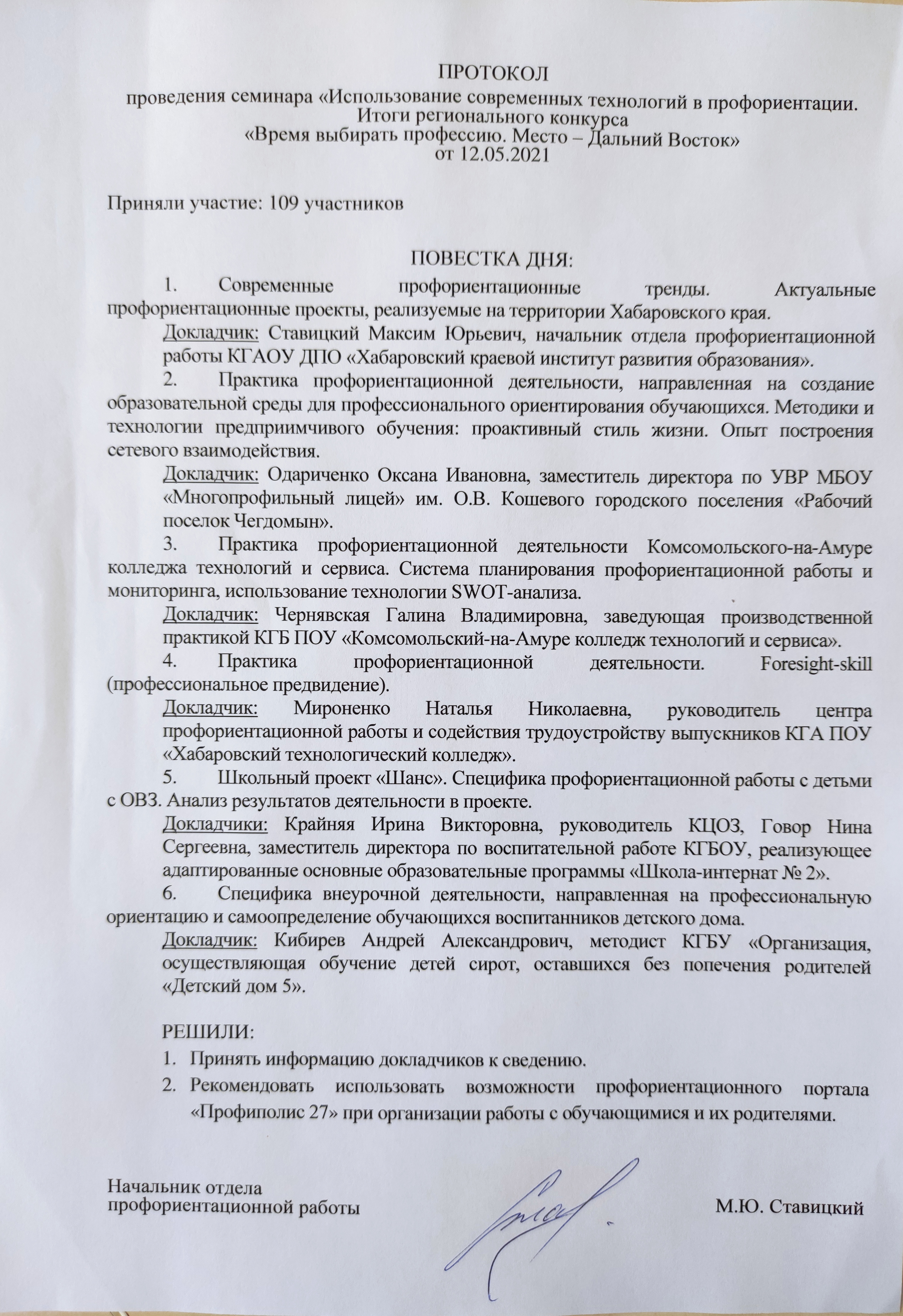 4. РЕКОМЕНДАЦИИ краевого семинара (вебинара) «Использование современных технологий в профориентации. Итоги регионального конкурса «Время выбирать профессию. Место – Дальний Восток»