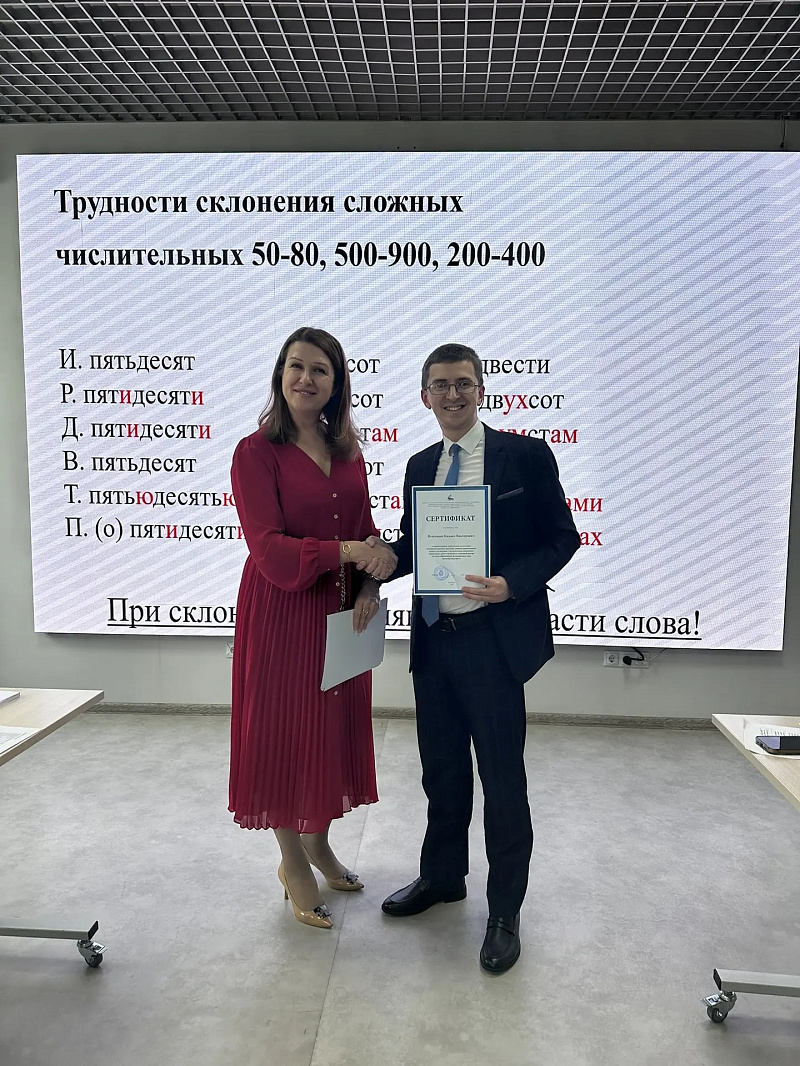Спикером выступила Крадожён-Мазурова Елена Михайловна — доцент кафедры русского языка Санкт-Петербургский университет МВД России, кандидат филологических наук, доцент, действительный член Гильдии лингвистов-экспертов по документационным и информационным спорам.